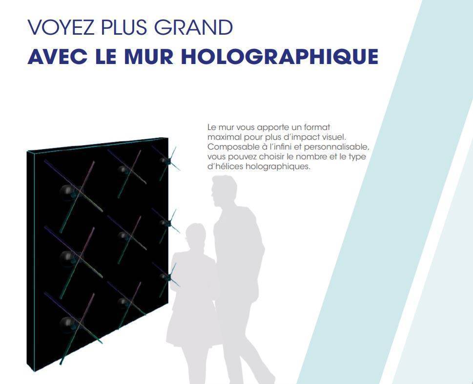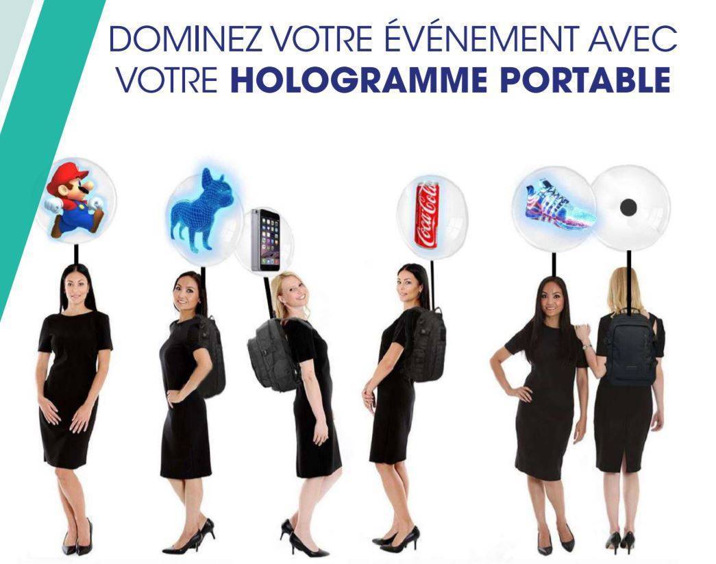 Grâce à nos hôtesses équipées d’une hélice holographique portable, votre communication personnalisée en hologramme pourra désormais s’étendre sur l’ensemble de l’événement.
