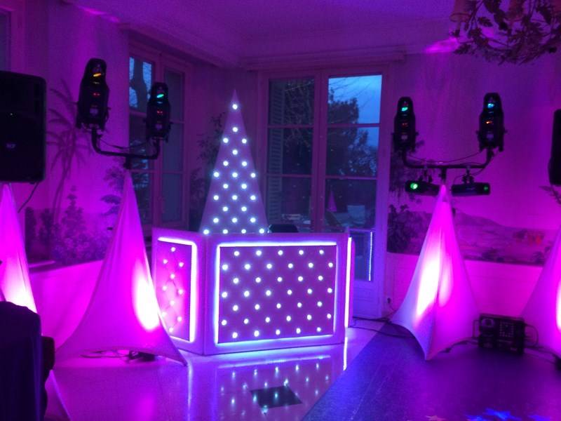 Ainsi que la mise en place d'effets spéciaux: fumée carboglace, show laser; pyrotechnique...