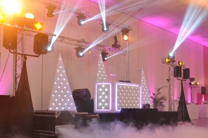 Nous pouvons également assurer la mise en lumière déco de votre lieu de réception ainsi que la mise en place d'effets spéciaux: fumée lourde carboglace, show laser, pyrotechnique, guirlandes led guinguettes...
