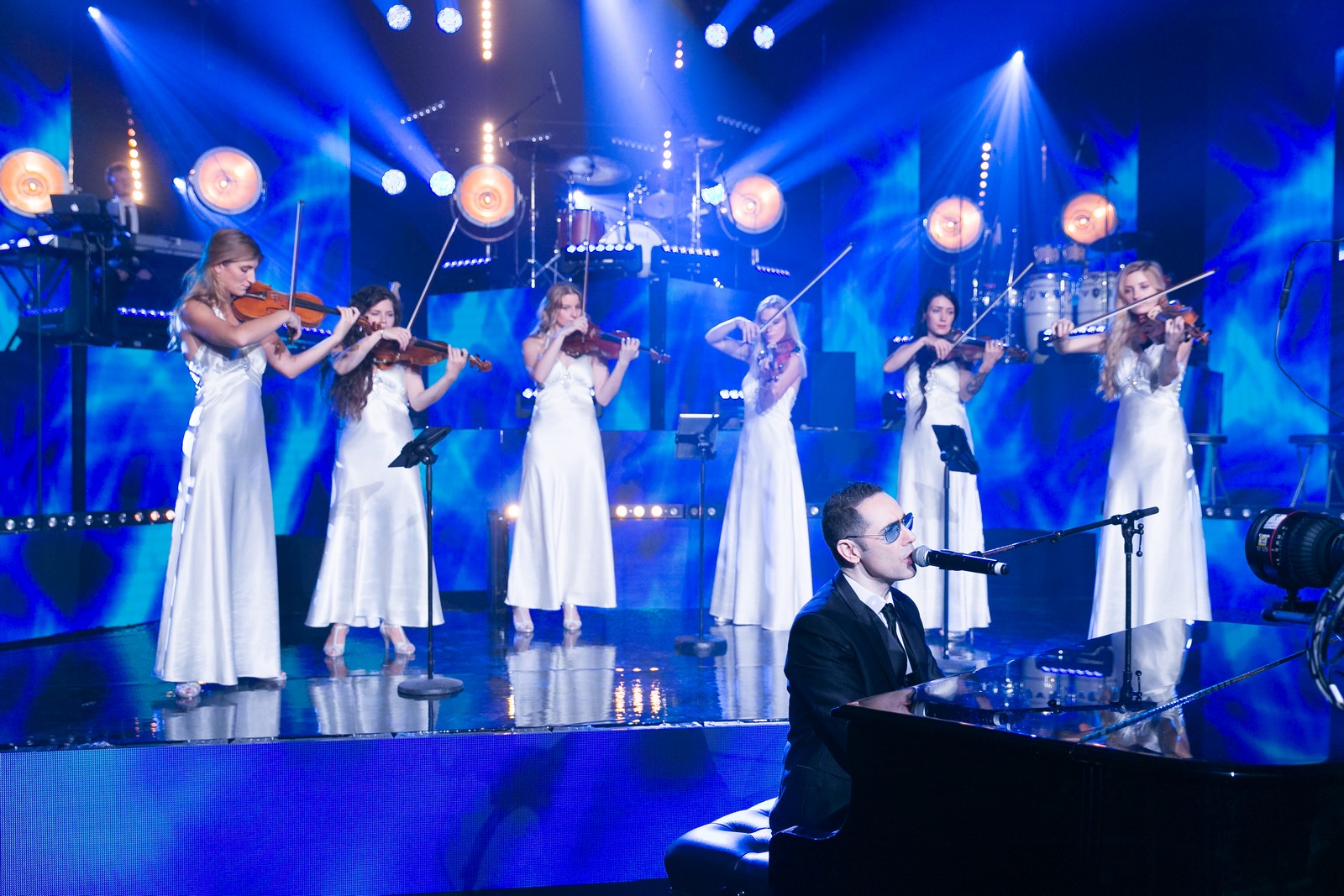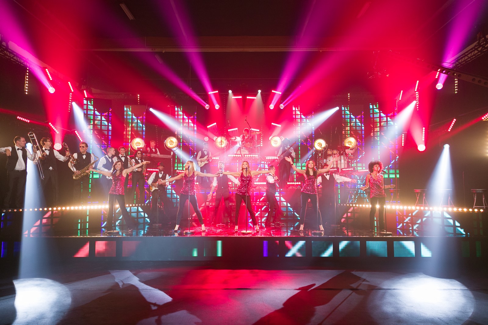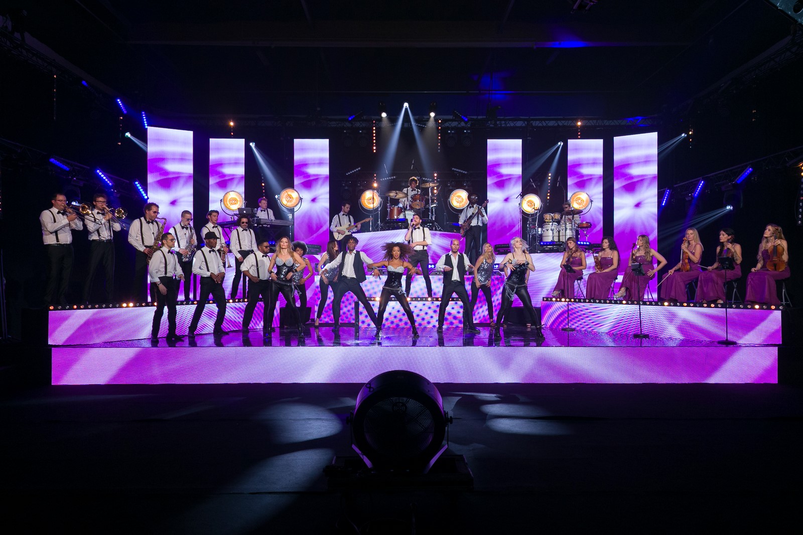 Grande formation de prestige composée d’artistes passionnés qui s’accompagnent d’une section de cuivres, un ensemble à cordes, musiciens, chanteurs/ses et danseuses dans une configuration variable qui s’adapte à chaque évènement.