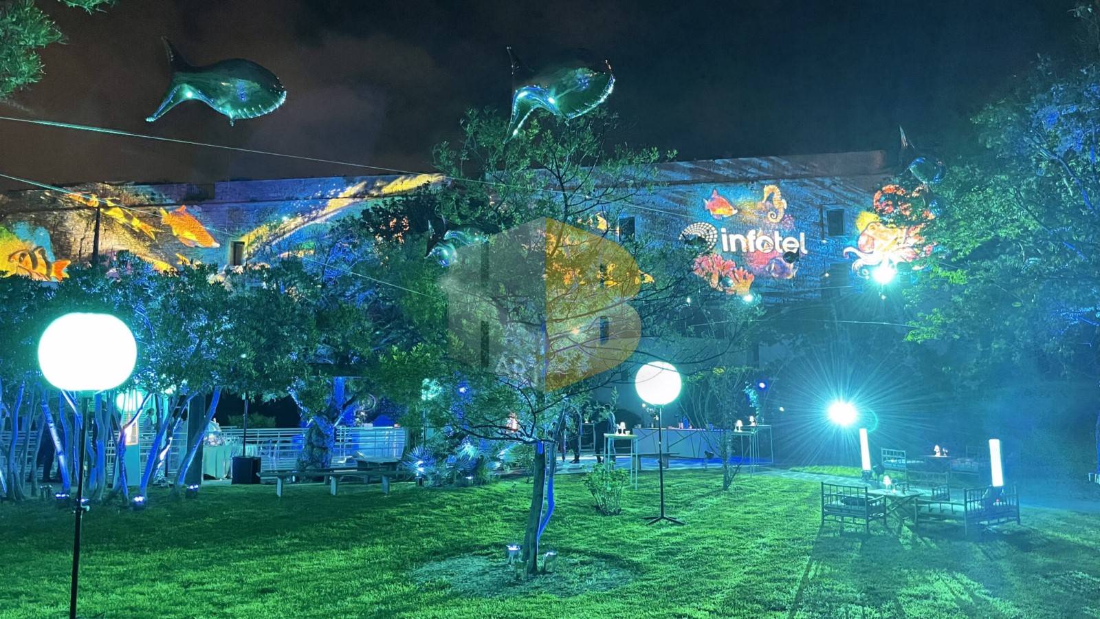 Nous pouvons créer des projections de lumière sur le lieu de votre événement, en utilisant des projecteurs à haute résolution et haut rendement. Ces projecteurs peuvent être configurés pour projeter des images animées, des designs graphiques, des effets visuels.