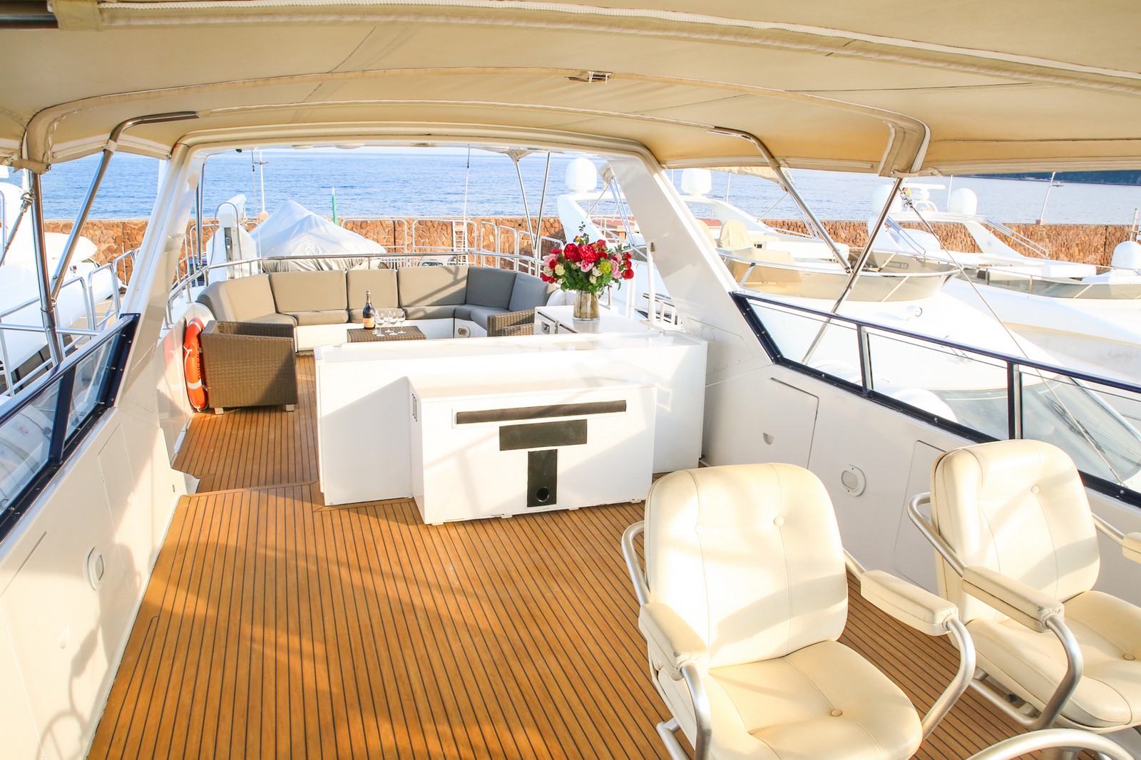 Au large de la baie de Cannes, St Tropez ou Monaco, vous pourrez admirer un coucher de soleil, profiter d’instants de baignades, bruncher déjeuner ou diner, séjourner au mouillage, organiser une Yacht Party à quai ou en mer. A bord, vous serez pris en charge par un équipage d’un grand professionnalisme, qui restera attentif à vos moindres désirs, il veillera en toute discrétion à votre bien-être et votre sécurité à bord.